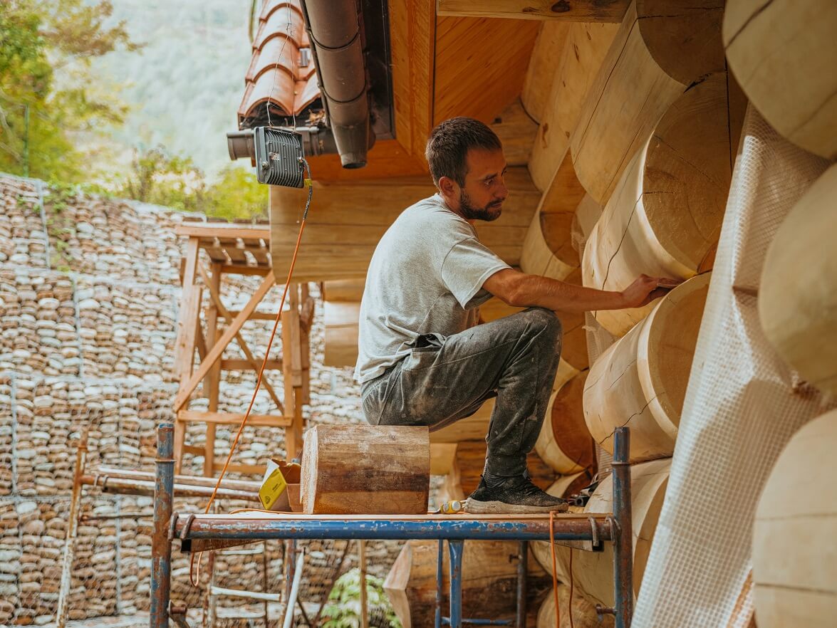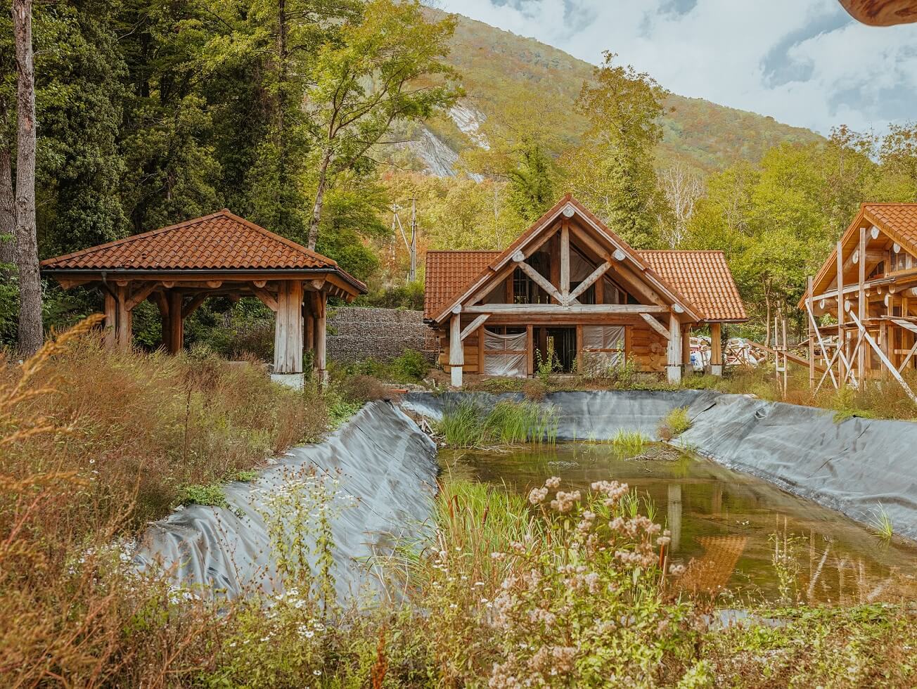 Сейчас мы активно работаем над деревянным комплексом «Эрива» в Геленджике. Летние температуры в городе доходят до солидных +32.