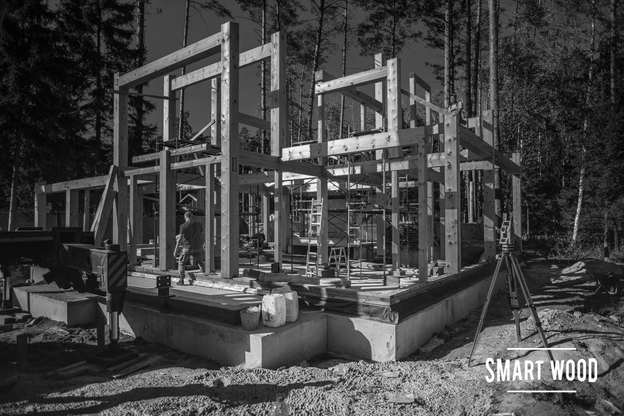 Он будет полностью построен из бруса большого сечения. Для строительства мы выбрали кедр — материал, который лучше прочих ведёт себя в сложных конструкциях благодаря своей прочности.