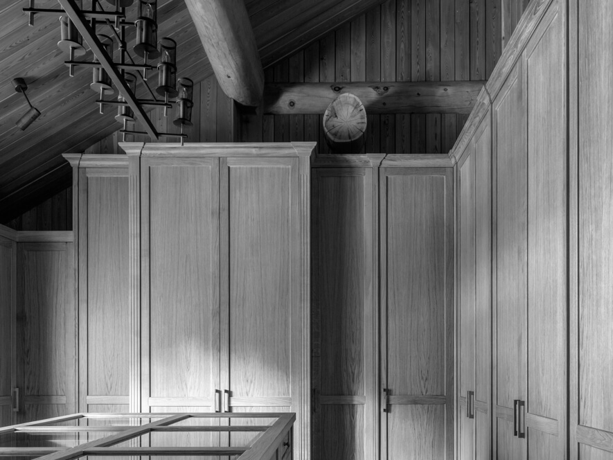 В одном из наших проектов мы сделали гардеробную, в которой точно нет никаких компромиссов. Каждый сантиметр здесь служит цели удобного хранения вещей. Шкафы как отдельная архитектурная линия, придающая объём и интересную графику. Двери в этой гардеробной было решено сделать закрытыми. Так комната выглядит максимально аккуратно. Единственный открытый элемент — это стеклянные фасады выдвижных ящиков по центру помещения. В них удобно хранить аксессуары и быстро находить то, что нужно, также они защищают изделия от влажности и пыли.