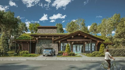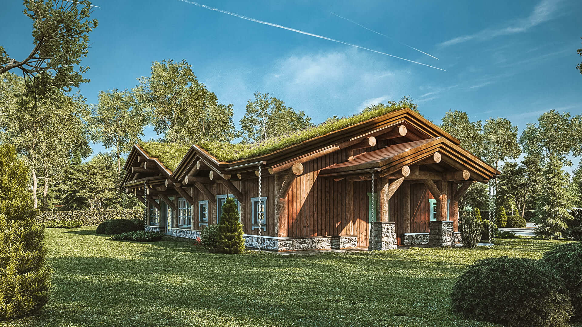 Общая площадь ресторана — 164 м2. Это классическое здание в каркасе Post&Beam, которое будет построено из лучшего алтайского кедра, как и все дома Smart Wood. Большие бревенчатые стропила добавляют каркасу основательности и гармонично сочетаются с ендовой крышей, оформленной земельной кровлей.