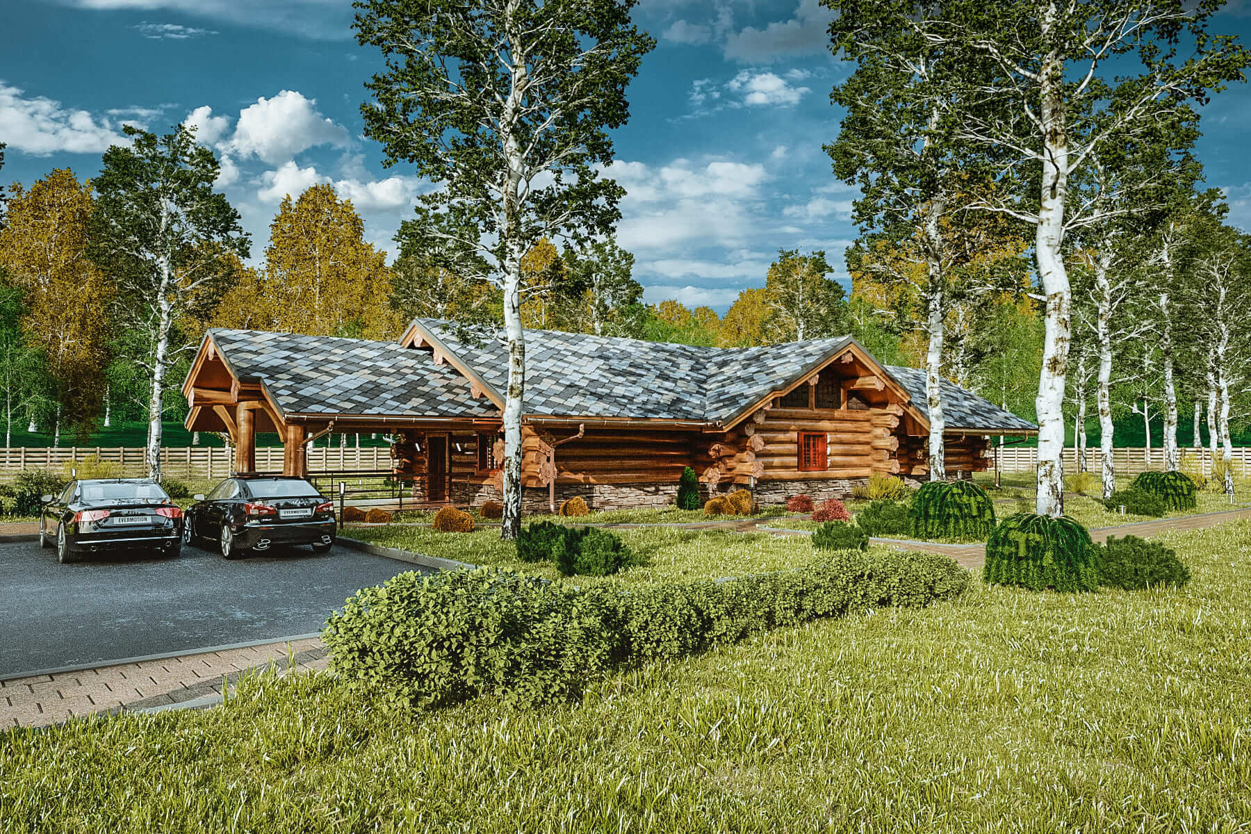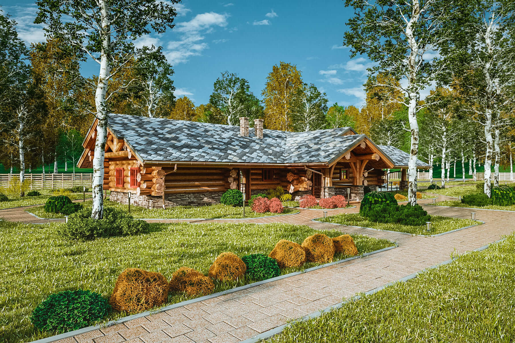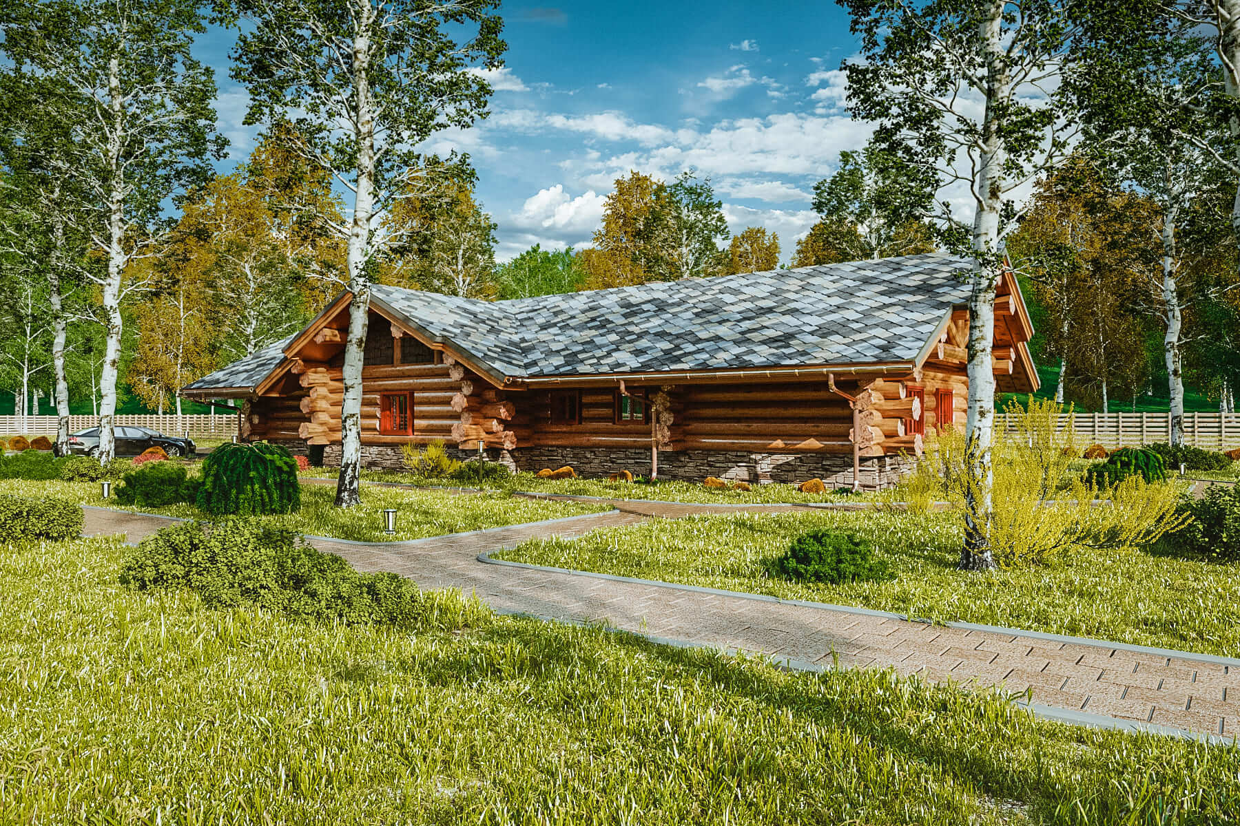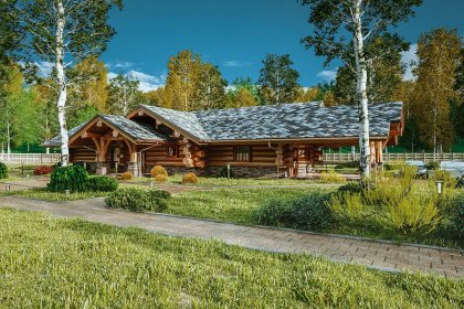 Крыша дома запланирована под использование тяжелой кровли — черепицы или сланца. Мы рекомендуем выбирать большой норвежский сланец — он лучшим образом вписывается в архитектуру дома и подходит к природным формам зауголков.